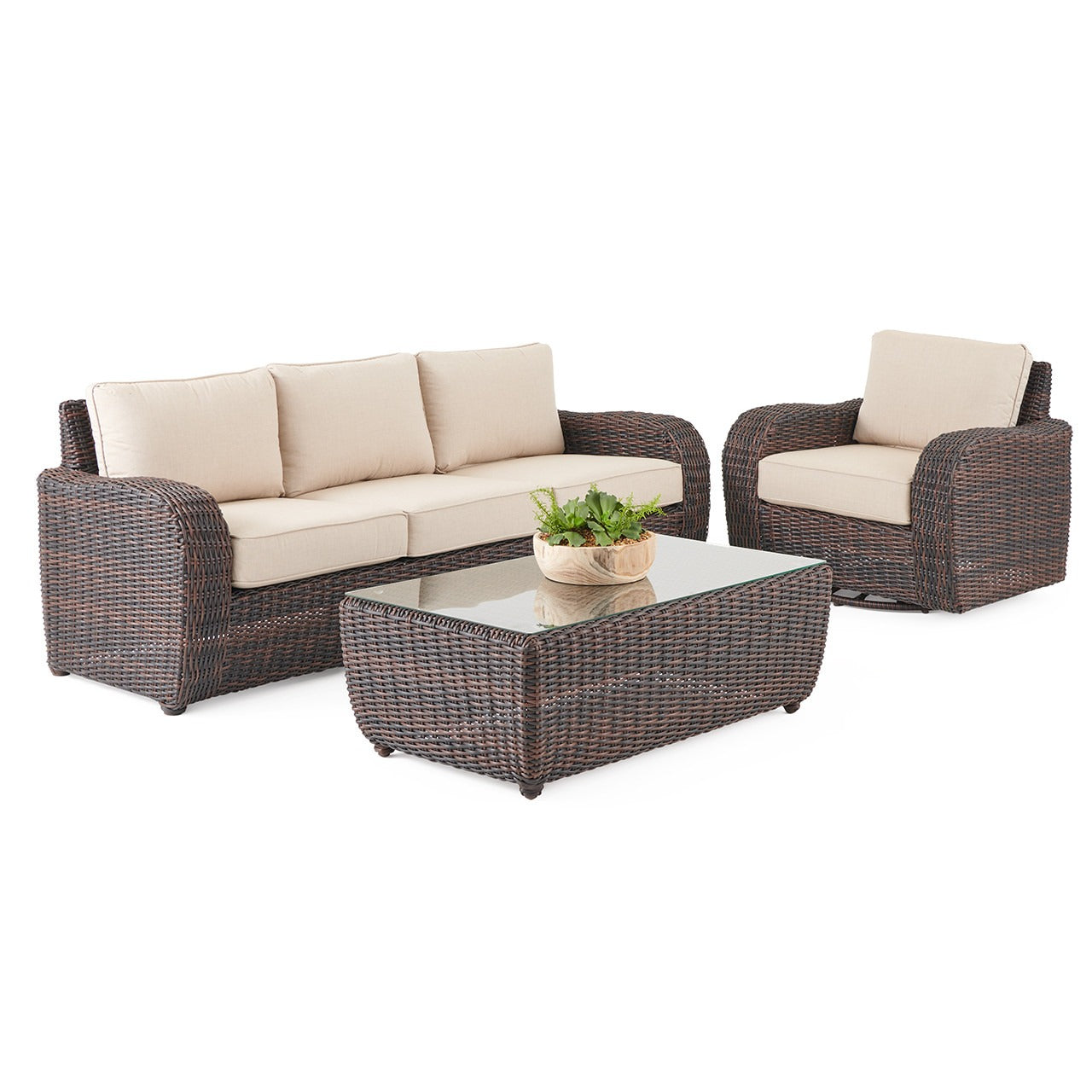 Eden Grace - 4 PC Faux Wood Steel Wicker Conversation Set with 10cm Seat & Back Cushions - Olefin Fabric, Non-K/D