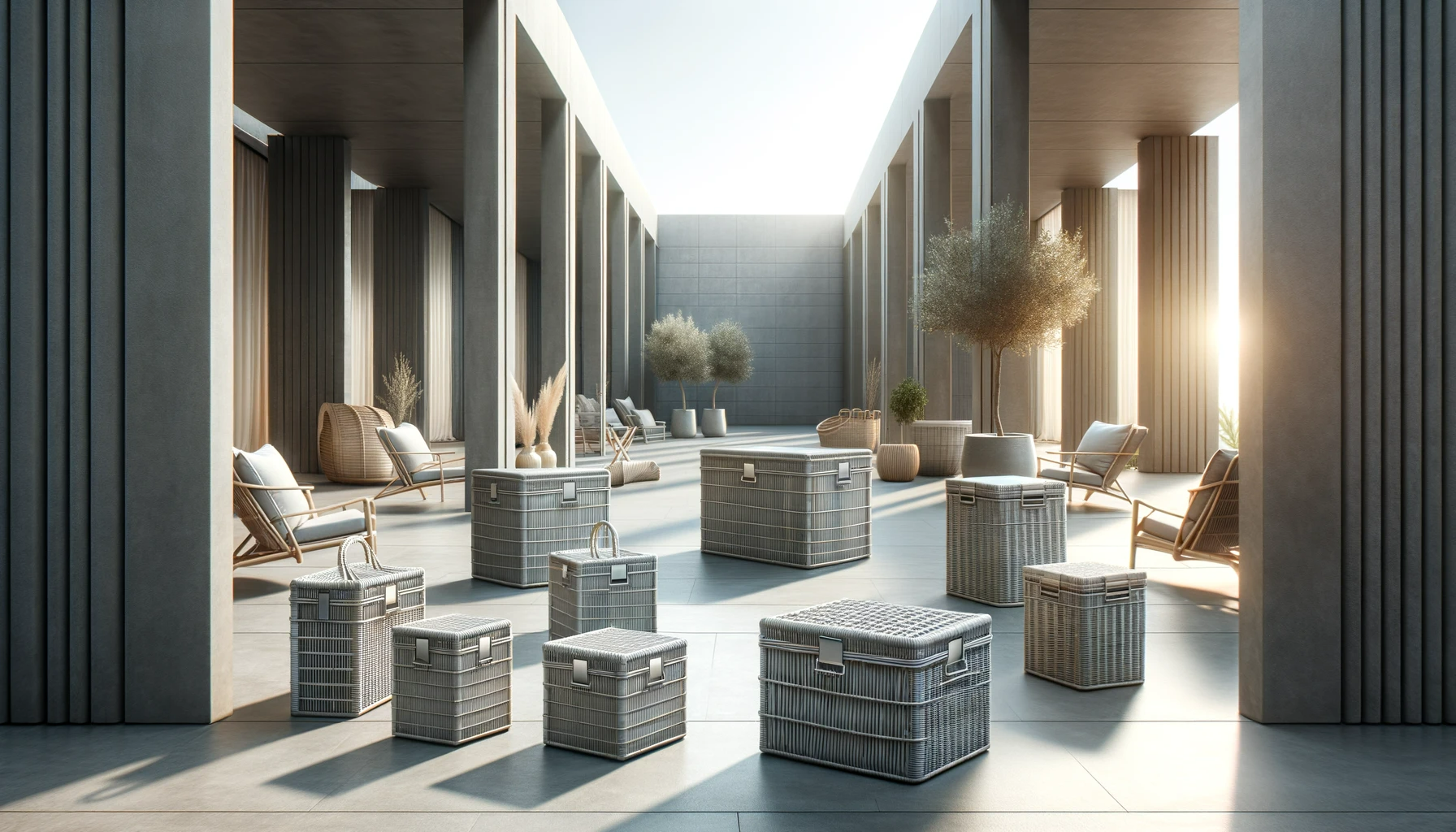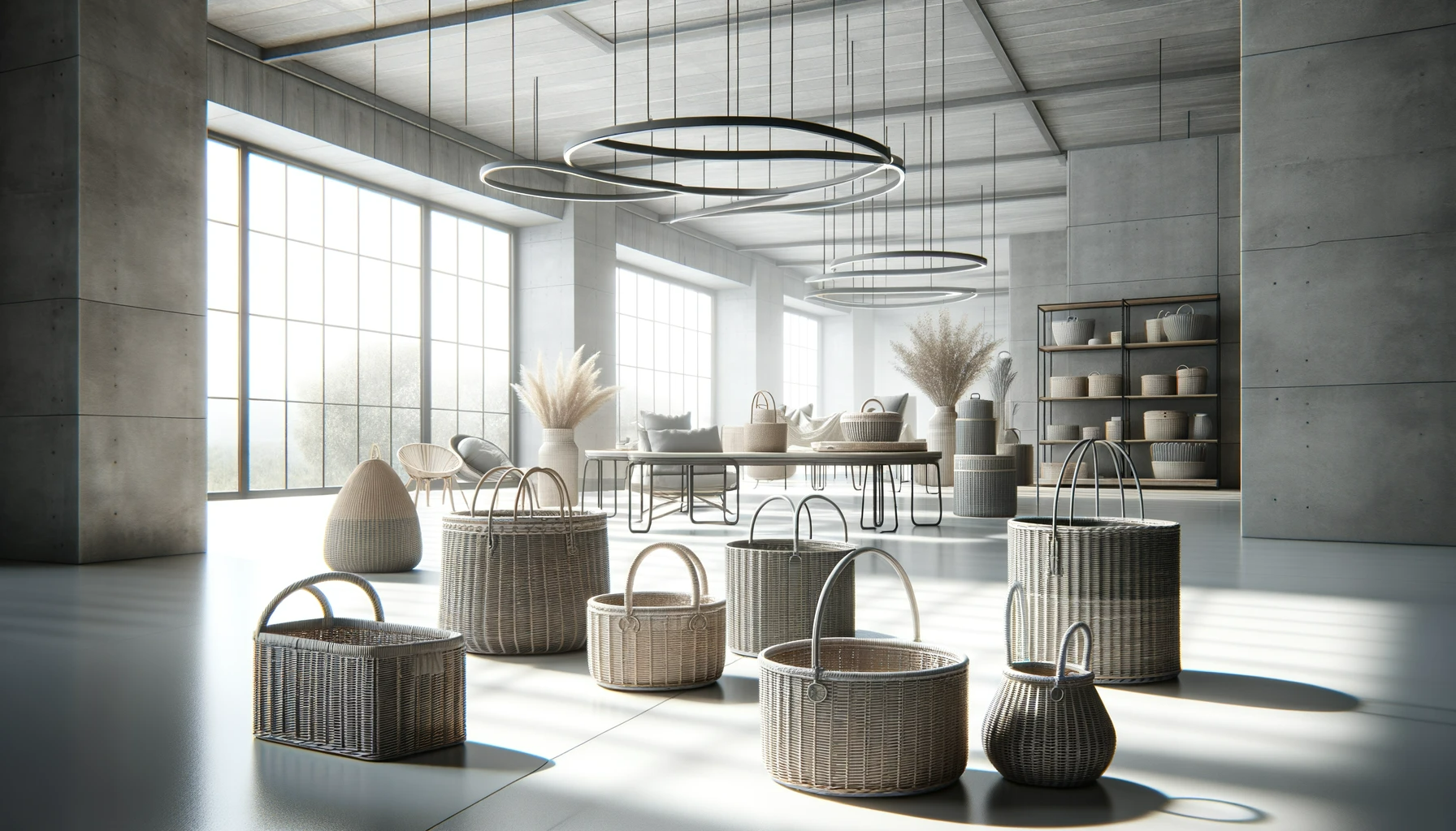 Eden Grace - Rectangular Nesting Wicker Baskets with Art Deco Design and Round Handles - Arrow Weave, Natural Mix White Color